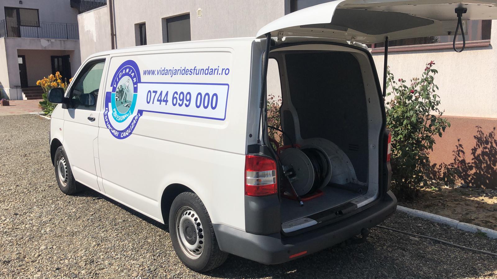 Lucrarile de vidanjare si desfundare sunt executate cu autospeciale de 11 mc ce au in dotare pompe de inalta presiune.